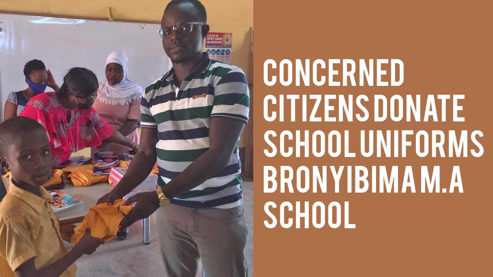 360 Human Rights a not for profit organisation based in Elmina with the help of some concerned citizens [Emmanuella Amoquandoh, Prince Adarkwah, CEO DIL sports and Darteh family, Mrs. Annan, Juweila] have donated some new school uniforms and exercise books to selected pupils of the Bronyibima M. A. School at Bronyibima a community near Elmina, Ghana. The items was presented by Isaac Yirenkyi, PRO of the organisation on behalf of the group. Asked what impelled them to embark on such an act he said a number of the children come to school in dresses that are not fit to be called uniforms this prompted them to purchase some uniforms and books.